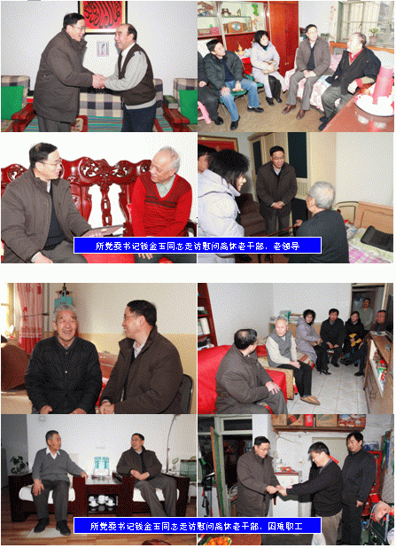 2010年新春佳节即将到来之际,为让U钱包APP SERVER离退休老干部、老党员和困难职工度过一个安乐祥和的春节,所党委于近期组织召开了迎新春、送温暖活动,所党委钱金玉书记、边鸣秋副书记在党办、人事处、离退办等部门同志的陪同下,于1月21日至22日,分别走访慰问所部及塘沽地区部分离退休老同志和困难职工,向他们送上慰问品、慰问金以及节日的祝福,为U钱包APP SERVER营造出安定、和谐、喜庆的节日气氛。