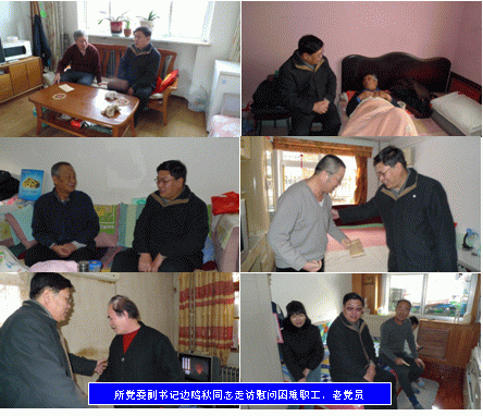 此外,所离退办也分别对正在医院住院的老同志、住在养老院的老同志以及部分老领导的遗孀进行了慰问,向他们带去所党委的关怀和温暖,并送上慰问品、慰问金及新春的问候。