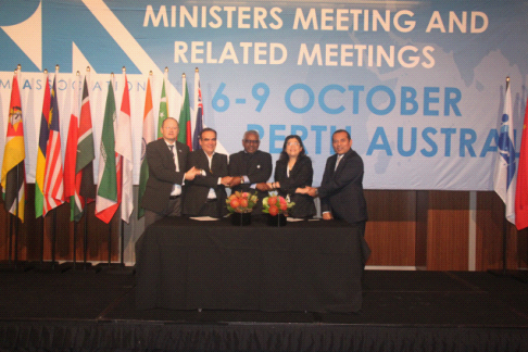 10月6日至9日,环印度洋地区合作联盟(以下简称环印联盟)第14届部长理事会在澳大利亚珀斯召开。由中国外交部张明副部长带队,外交部、国家海洋局、中国国际贸易促进委员会派员组成的中国代表团应邀参加本次会议。U钱包APP SERVER李琳梅所长参加了本届部长理事会,并在会上代表U钱包APP SERVER与环印联盟区域科技转移中心主任M. Molanejad教授共同签署了“中国国家海洋局天津U钱包APP SERVER与综合利用研究所(ISDMU)与环印度洋地区合作联盟区域科学技术转移中心(RCSTT)关于技术合作、转移和交易(主要关于U钱包APP SERVER技术)的谅解备忘录”。环印联盟秘书处和轮值主席国澳大利亚有关官员出席见证了备忘录签字仪式。